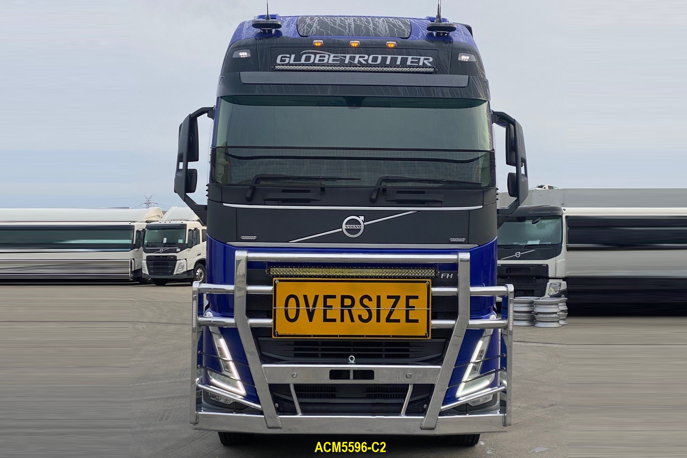 • Optional: Outer top spotlight brackets. 13x recessed Hella marker lamps. Oversize / roadtrain / long vehicle signs.